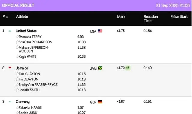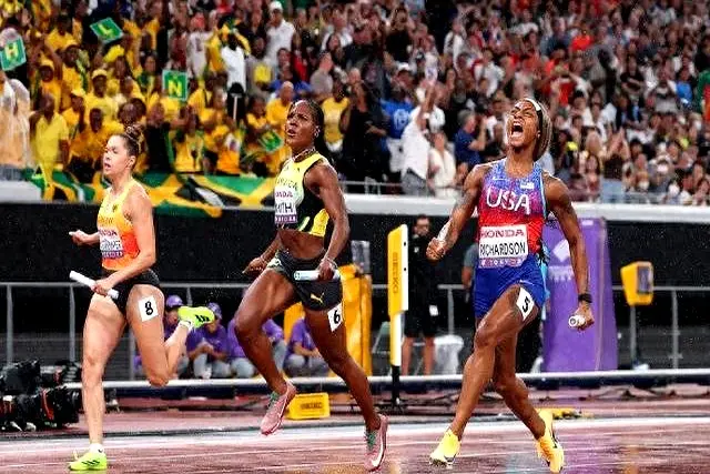 观众们的欢呼声在此刻达到了顶峰,杰斐逊-伍登的速度如同洪流般涌出,终于在终点线前,她以一记完美的冲刺为美国队锁定胜局。